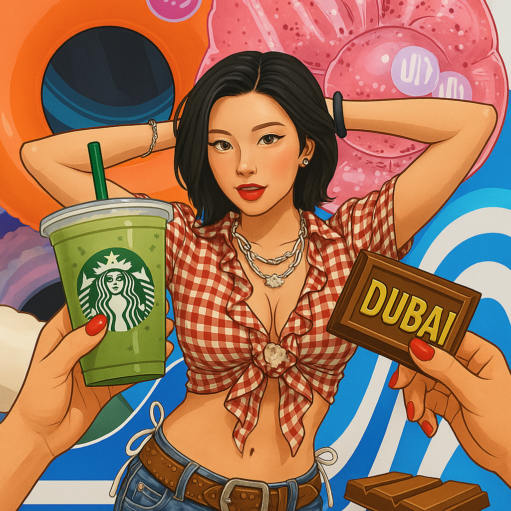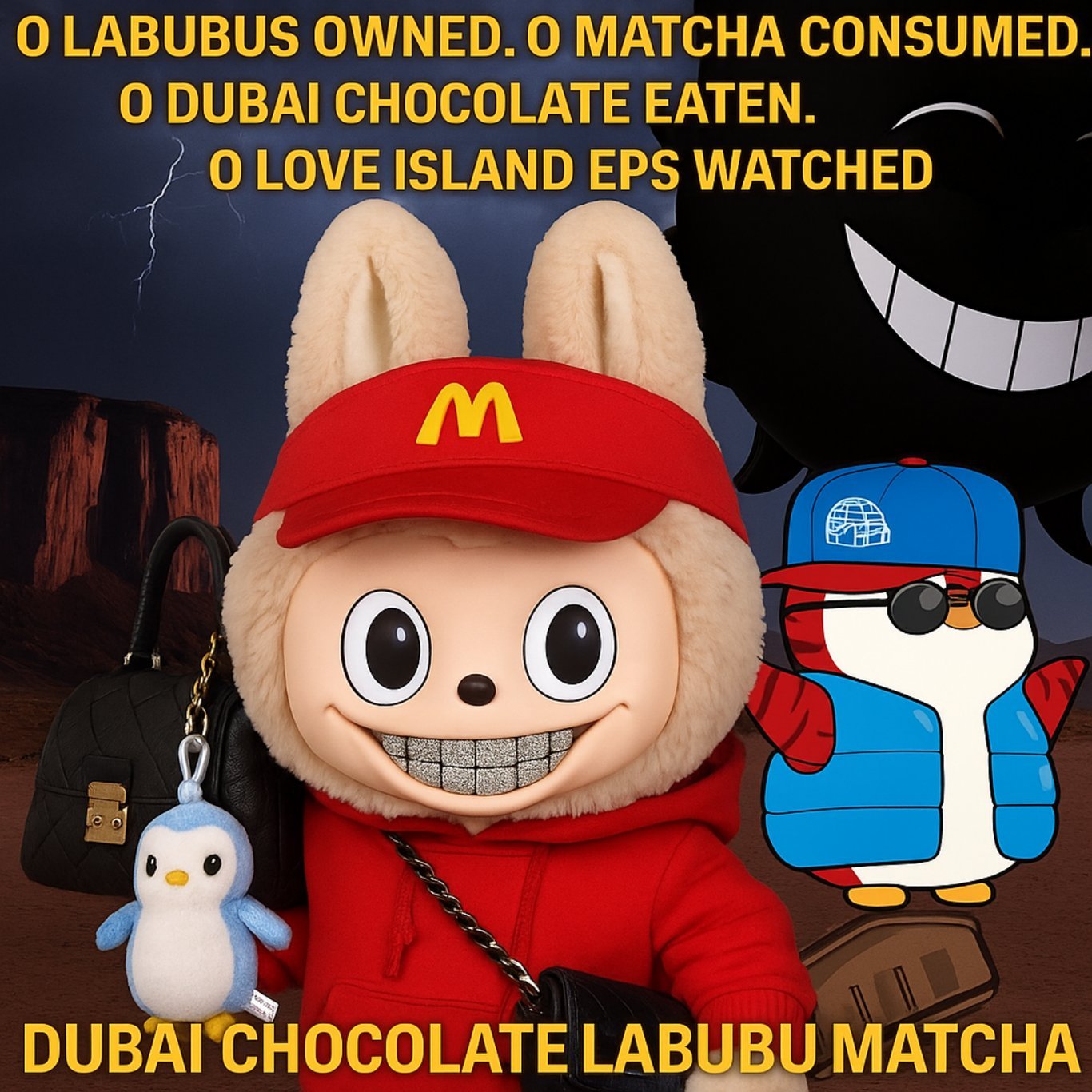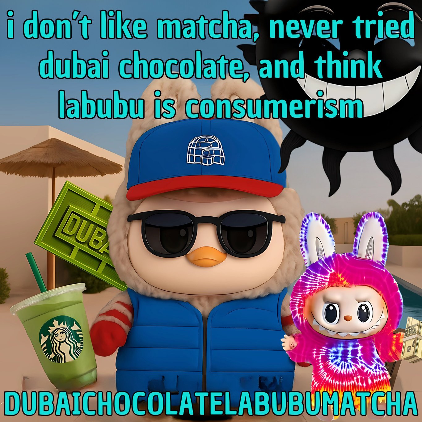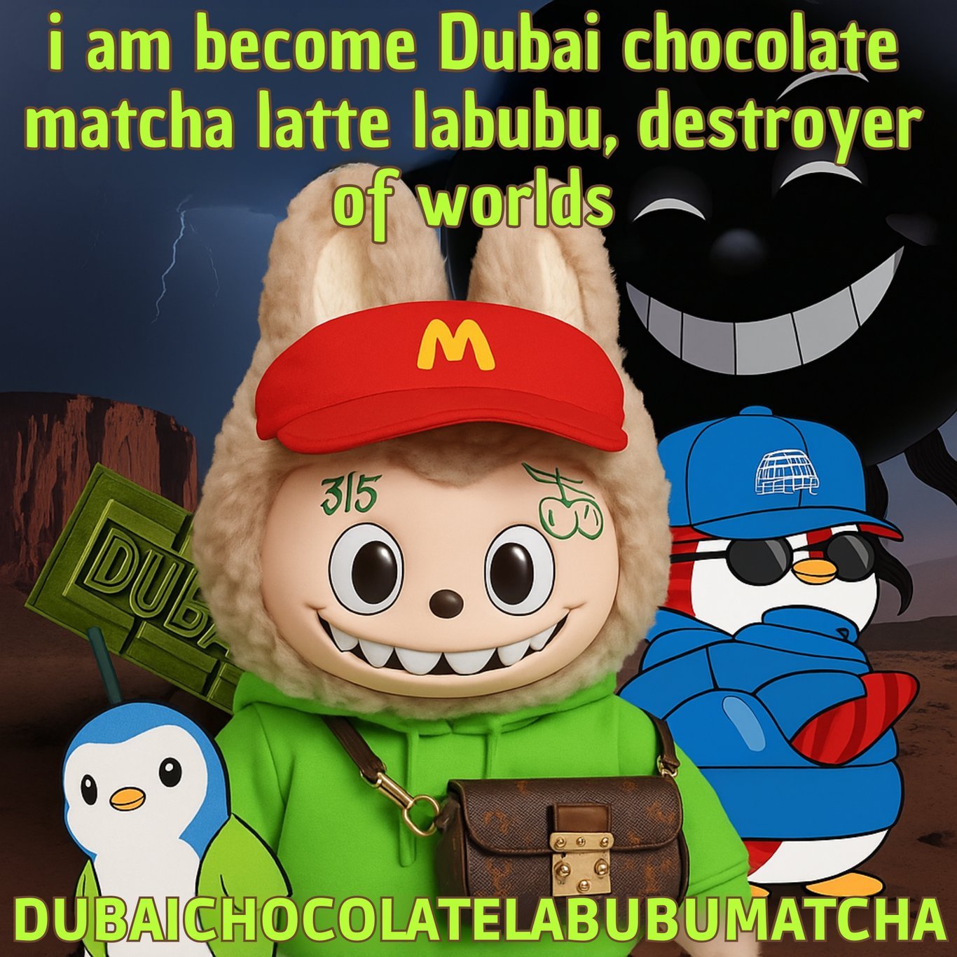 拉布 "抹茶迪拜巧克力 "不仅仅是一种象征--它融合了混乱、文化和奢华。1 TP4T 站立诞生于中国流行文化,在迪拜梦想中提炼,并注入抹茶甜味,作为新一代的象征巍然屹立。